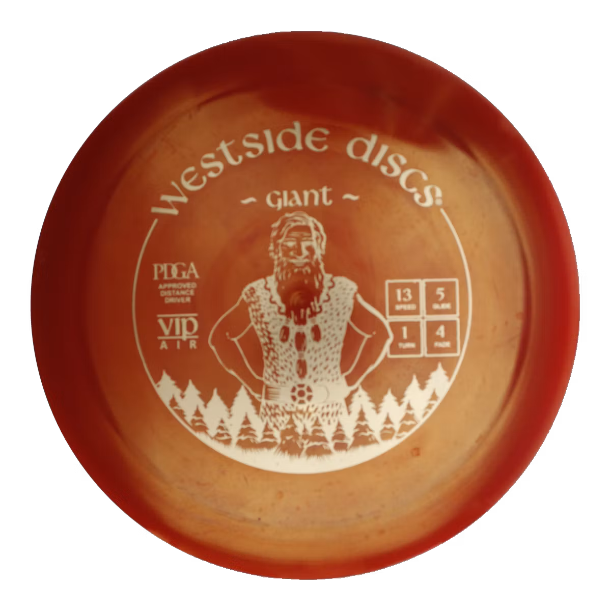 The Giant from Westside Discs is no ordinary distance driver—it’s crafted to redefine your expectations on the course. With flight numbers Speed 13.0, Glide 5.0, Turn 1.0, and Fade 4.0, this distance driver offers a flight pattern suited for advanced players. Glide like this makes it a favorite for both power arms and finesse throwers alike. This disc holds its line with power, resisting early turn. Its fade brings it home reliably, perfect for controlled landings. Great for forehands, backhands, or tricky lies where trust is everything.