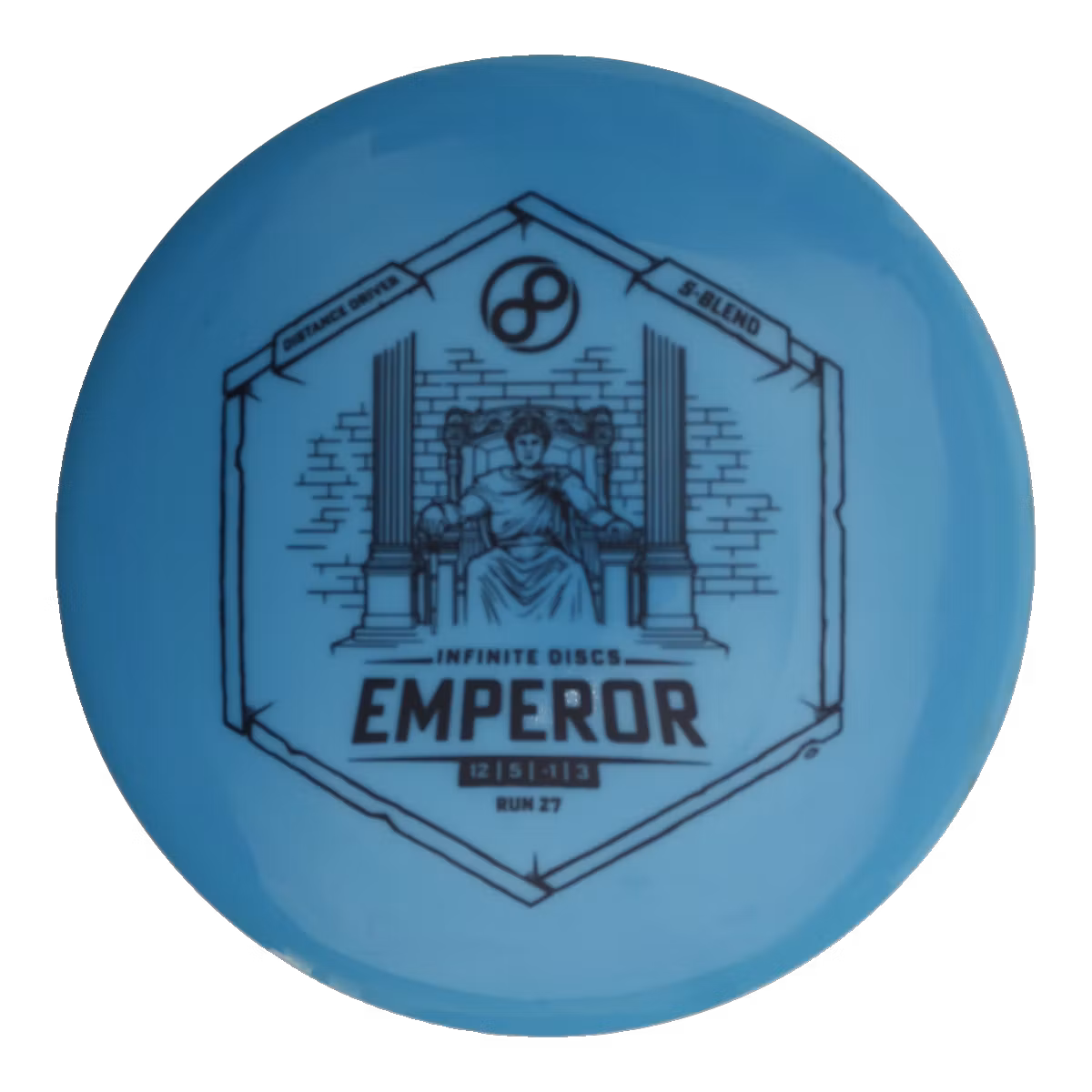 The Emperor from Infinite Discs is no ordinary distance driver—it’s crafted to redefine your expectations on the course. With flight numbers Speed 12.0, Glide 5.0, Turn -1.0, and Fade 2.5, this distance driver offers a flight pattern suited for intermediate and advanced players. Its glide makes it ideal for open shots or wooded lanes where staying in the air matters. Tame fairways or carve creative lines through trees with its turn-friendly profile. Finishes with a confident fade—reliable into headwinds or for strategic placement. Great for forehands, backhands, or tricky lies where trust is everything.