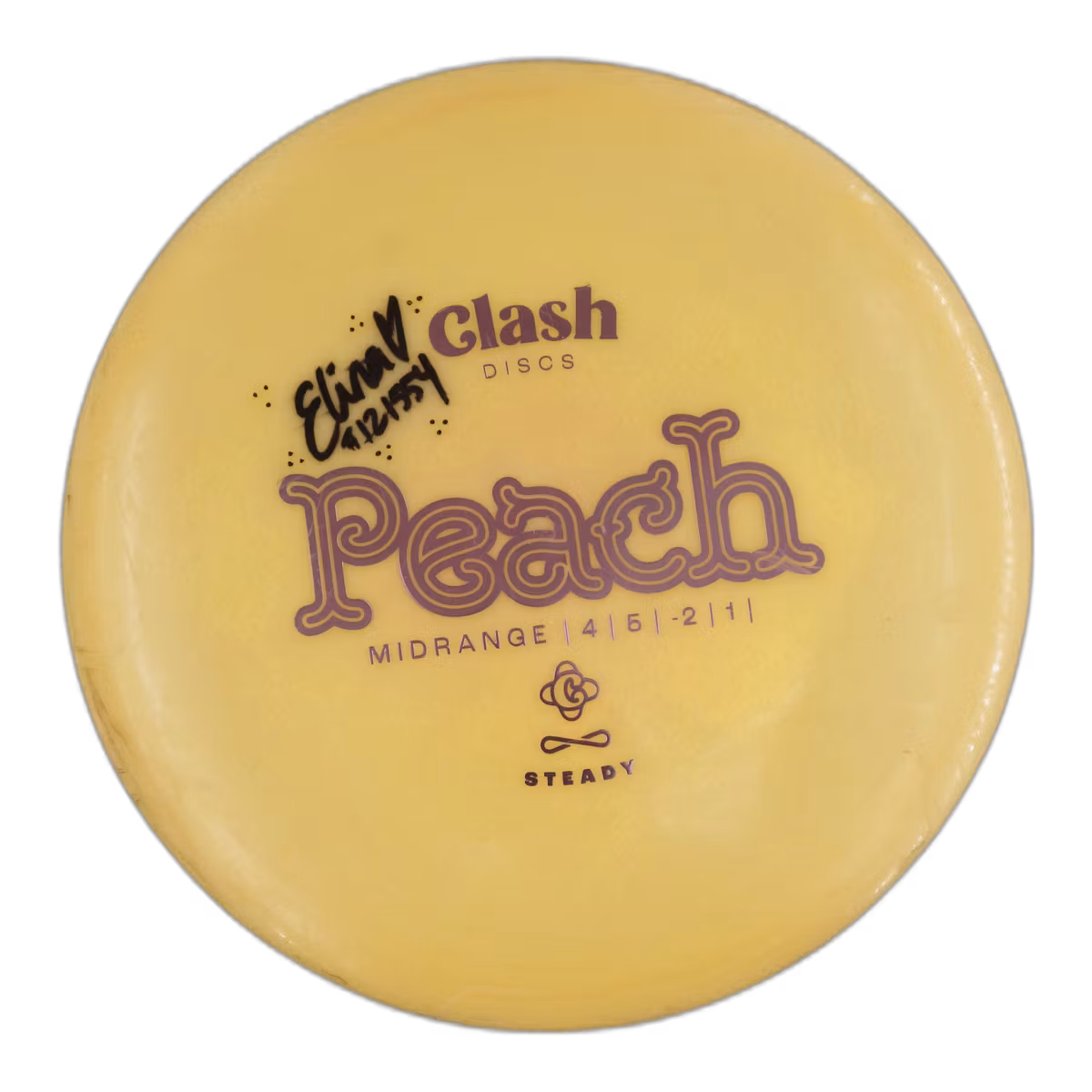 Designed with precision and built for flight, the Peach from Clash Discs is your go-to midrange when consistency matters. With flight numbers Speed 4.0, Glide 5.0, Turn -2.0, and Fade 1.0, this midrange offers a flight pattern suited for intermediate and advanced players. You’ll be surprised how much carry you get—without sacrificing accuracy. Ideal for anhyzers that hold or flex lines that need control. Whether you’re chasing birdies or saving par, this disc delivers under pressure.